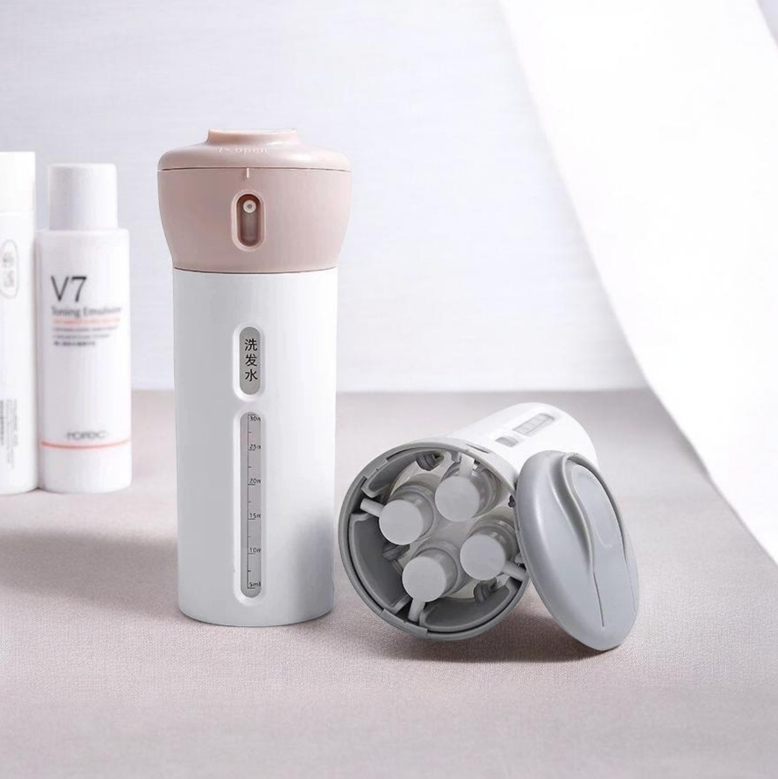 رفيق السفر المثالي! زجاجة 4 × 1 مبتكرة تجمع كل مستحضراتك في عبوة واحدة مدمجة ومنظمة توفر مساحتك وتمنع التسريب بلمسة ذكية ✈️ دليلك للراحة والأناقة أينما كنت! ✨💼